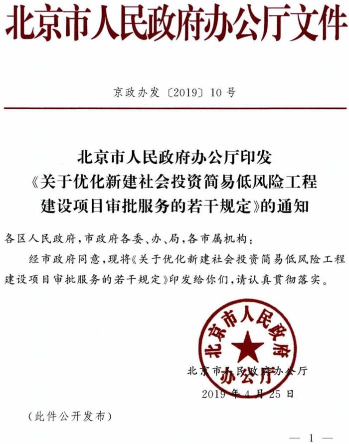 北京《關(guān)于優(yōu)化新建社會(huì)投資簡(jiǎn)易低風(fēng)險(xiǎn)工程建設(shè)項(xiàng)目審批服務(wù)的若干規(guī)定》